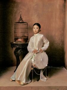 Ở một khung hình mang tính biểu tượng, Hoa hậu Xuân Hạnh, Hoa hậu Phương Linh cùng Top 2 Miss Cosmo 2025 tái hiện bức tranh “Tố nữ” quen thuộc, bốn cô gái với những hoạt động như thổi sáo, gảy đàn, nâng quạt. Các nhân vật không chỉ được sắp đặt theo bố cục cổ điển mà còn được thể hiện bằng ngôn ngữ thời trang đương đại, tạo cảm giác như những “tố nữ” đang bước ra từ khung tranh, hiện diện sống động trong không gian thực tại. Qua đó, vẻ đẹp người phụ nữ Việt được nhìn lại một cách gần gũi, nhẹ nhàng nhưng vẫn giữ trọn chiều sâu văn hóa.