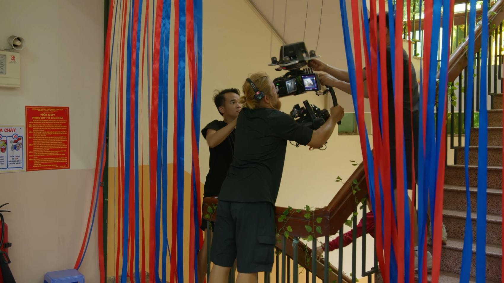 Giám đốc hình ảnh Pha Nguyễn kể lại cú máy bốn chiều đầy thử thách:“Chúng tôi phải đi từ hội trường, ra hành lang, xuống cầu thang và ra ngoài sân. Để kết hợp được cú máy này mọi người đã phải tập với nhau khá nhiều lần. Hai đêm trước khi quay phân cảnh này tôi hầu như không ngủ được, tôi cũng khá sợ, nhưng đây là cú máy tôi đã chờ đợi hai năm rưỡi để thực hiện nó. Tôi không được phép để mọi người giảm tinh thần”.